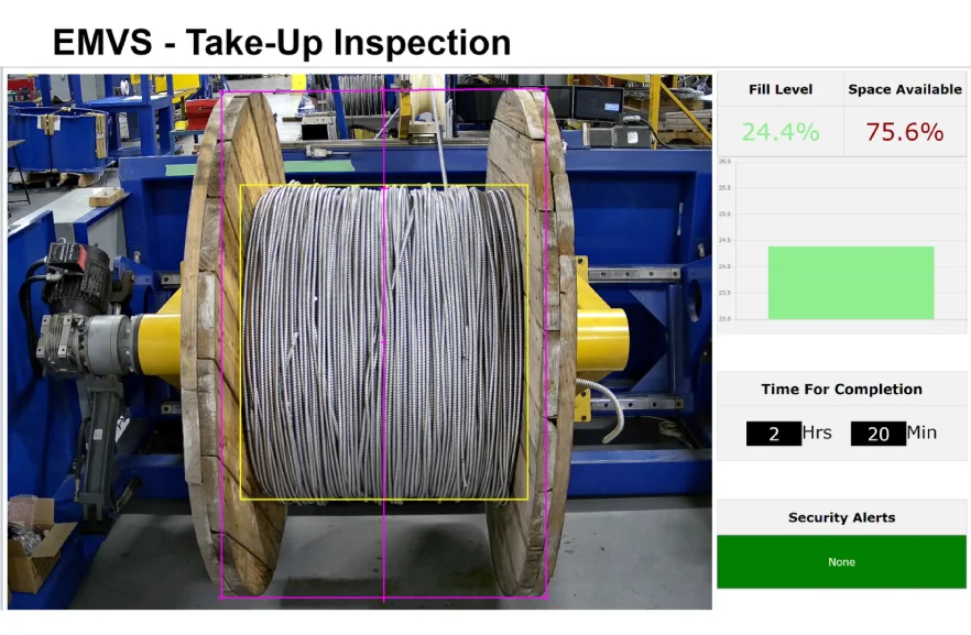 The Environmental Machine Vision System (EMVS) by CORPEX is designed to provide complete visual inspection and monitoring in cable manufacturing environments. It identifies missing armor, distorted products, and irregular shapes in real time while improving workplace safety through human detection in the workspace.